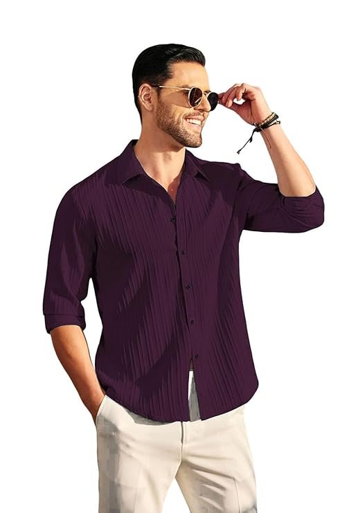 - 【Unique Design】Mens casual shirts feature long sleeve,spread collar, solid color,slight vertical ribbing,relaxed fit,simple and fashion