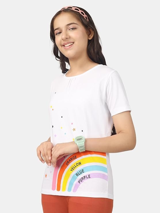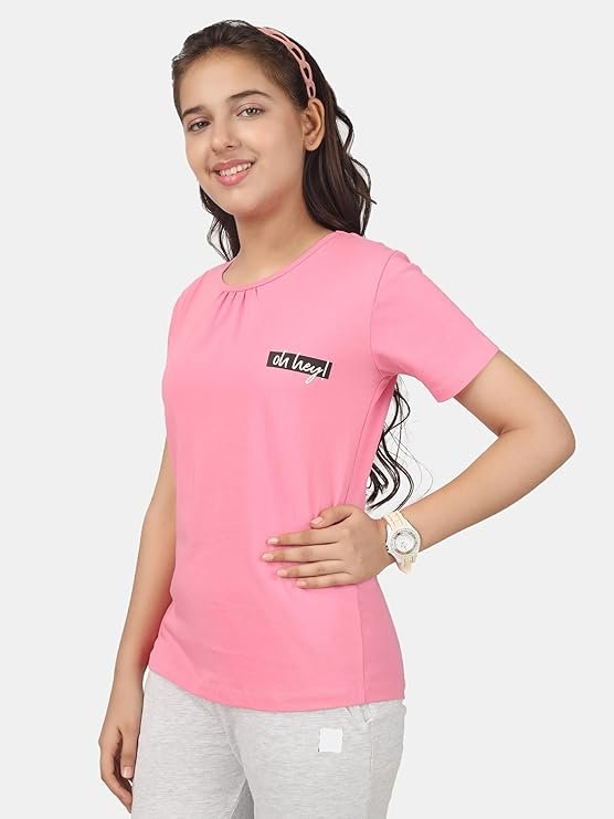 KYDA KIDS® Girls Premium 100% Cotton T Shirt | Antibacterial Printed Round Neck Half Sleeve Regular Fit Casual Summer Kids Top | Multicolor Combo (Pack of 3)