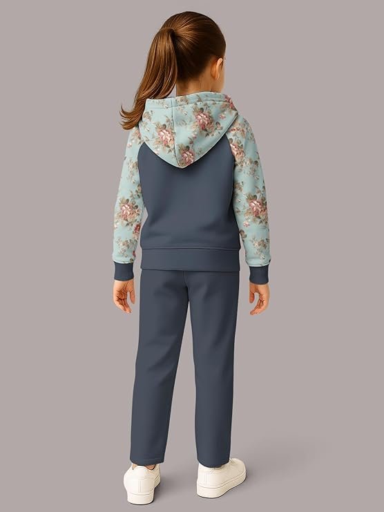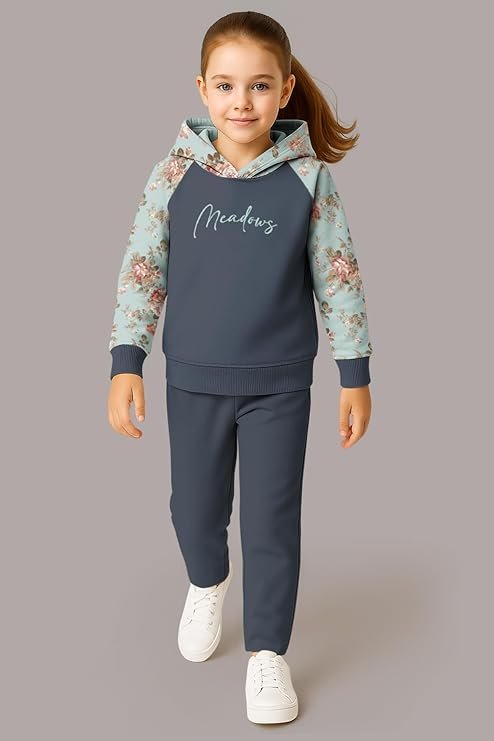 - This co-ords set for Girls kid includes a printed cotton blended hoodie sweatshirt and solid mid-rise track pant, designed with care for both playtime and everyday wear