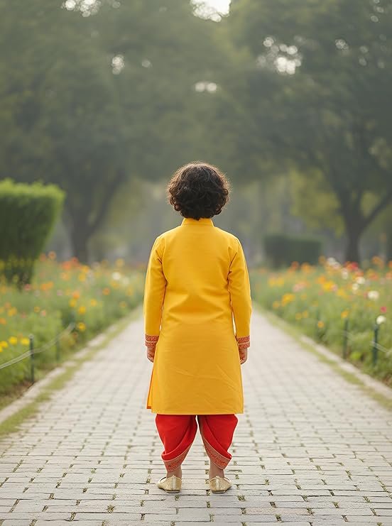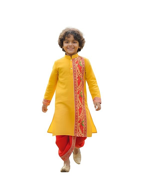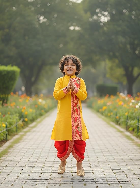 - COMFORTABLE & BREATHABLE: Soft, lightweight pure cotton kurta with sweat-friendly fabric keeps kids comfortable throughout celebrations; dupion silk dhoti adds a premium festive touch to the traditional outfit
