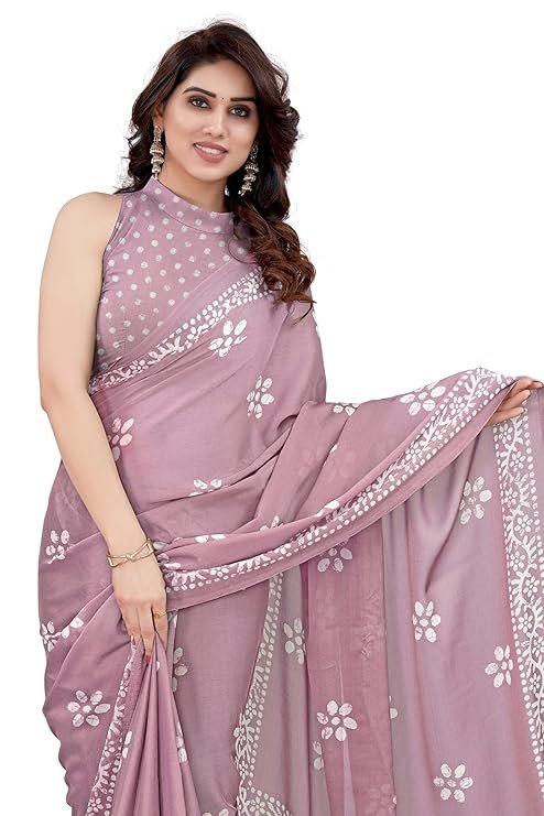 MIRCHI FASHION Women’s Latest Chiffon Batik Printed Saree with Blouse Piece