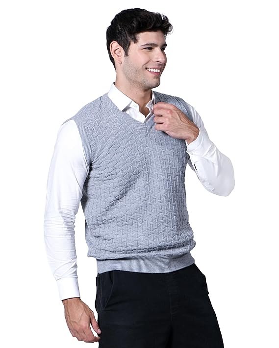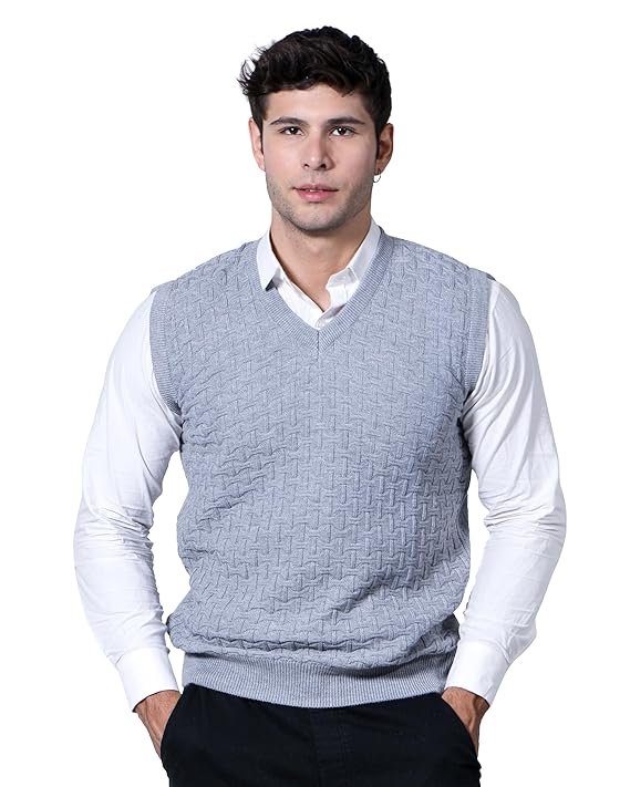 Men Woolen V-Neck Solid Plain Design Sleeveless Pullover Heavy Rainbow Fabric Winter Wear Pure Wool Cardigan for Men Fully Warm Pullover Free Sizes.